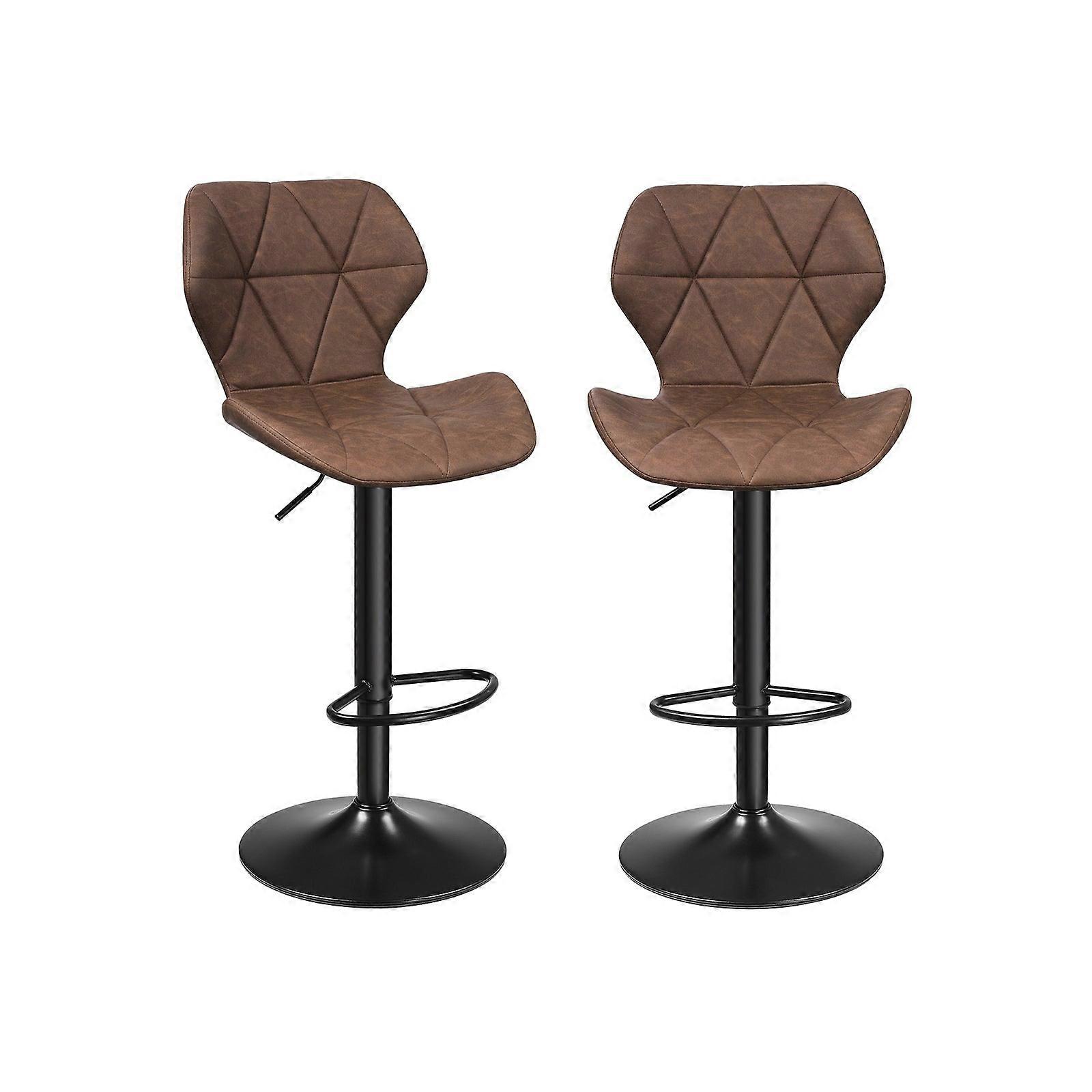 Homestorecity Barkrukken, Set van 2, Keukenstoelen met Stevig Metalen Frame, Kunstleren Bekleding, Voetensteun, Verstelbare Zithoogte, Eenvoudige Montage, Vintage, Donkerbruin - Ga aan de bar zitten Heb je de afgelopen weken te veel gewerkt? Profiteer dan van het weekend en ga zitten met een goede vriend De beste plek om dit te doen is aan je bartafel, die nu zal schitteren met deze opvallende barkrukken. De ergonomisch gevormde zitting en praktische voetensteun zorgen voor een hoog zitcomfort, zodat je tot diep in de nacht kunt napraten over oude tijden. Voorkomen is beter dan genezen: Om ervoor te zorgen dat deze stoelen niet wiebelen en je de zithoogte probleemloos en traploos kunt verstellen, gebruiken we bijzonder duurzame auto-return cilinders. Deze zijn getest door SGS en voldoen aan de BIFMA X5.1-norm (testrapportnr.: AJHL200400841FT; eigenaar: leverancier). Productdetails: - Kleur: donkerbruin - Materiaal: PU-leer, metaal - Productafmetingen: Totaal: 48 x 52 x (90-112) cm (L x B x H) Zithoogte: 57-79 cm Zitbreedte: 35 cm Zitdiepte: 39 cm Rugleuninghoogte: 33 cm Rugleuningbreedte: 43 cm Voetensteunhoogte: 20-42 cm Voetdiameter: 41 cm - Gewicht: 6,2 kg - Max. statisch draagvermogen: 120 kg Leveringsomvang: - 2 x barkrukken - 2 x accessoirepakket - 1 x gebruiksaanwijzing (DE, EN, ES, FR, IT) Homestorecity-aanwijzingen: - Om veiligheidsredenen is het kinderen verboden om op het product te klimmen of ermee te spelen.