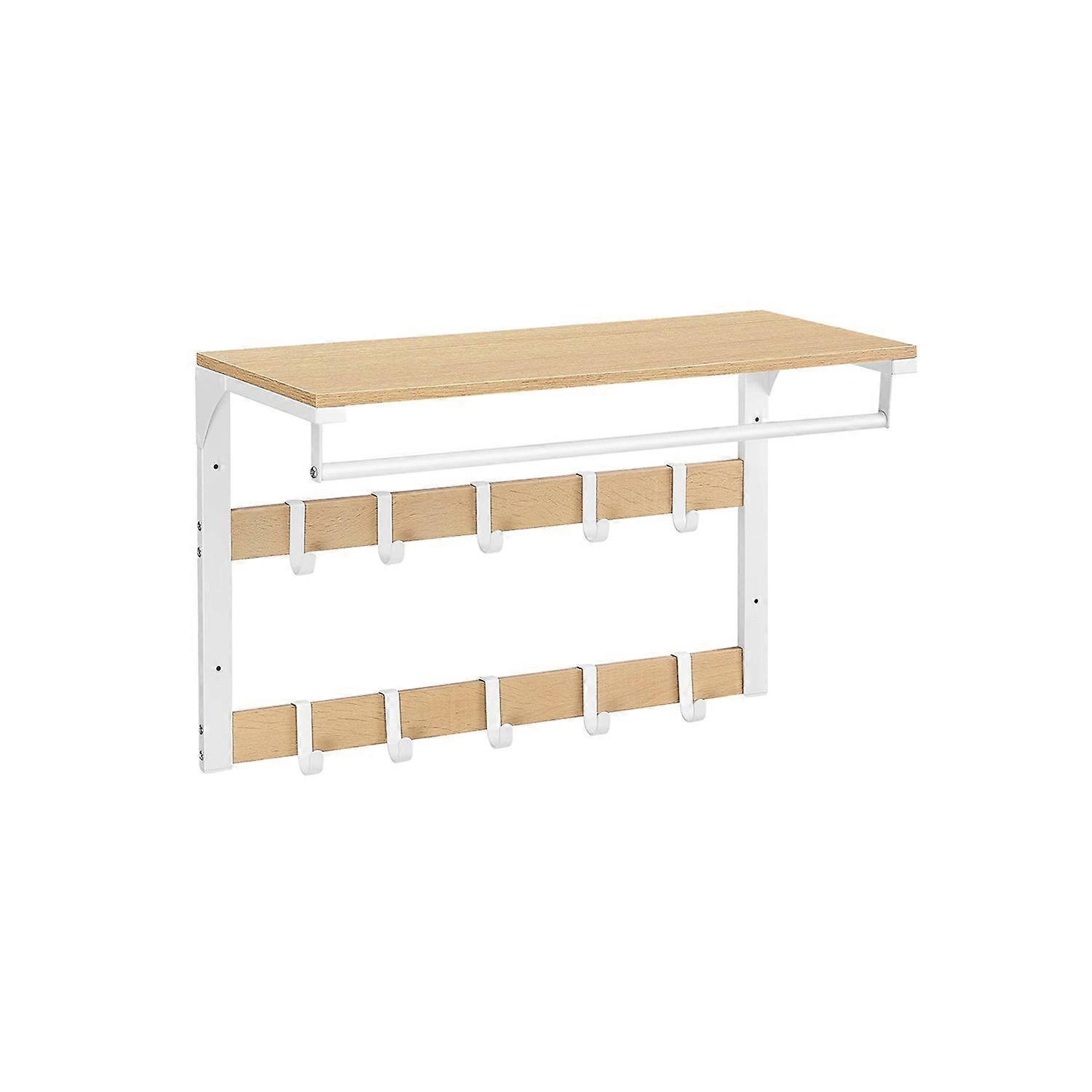 Wandkapstok Met Plank En 10 Afneembare Haken, Eikenwit 30 X 65 X 42 Cm