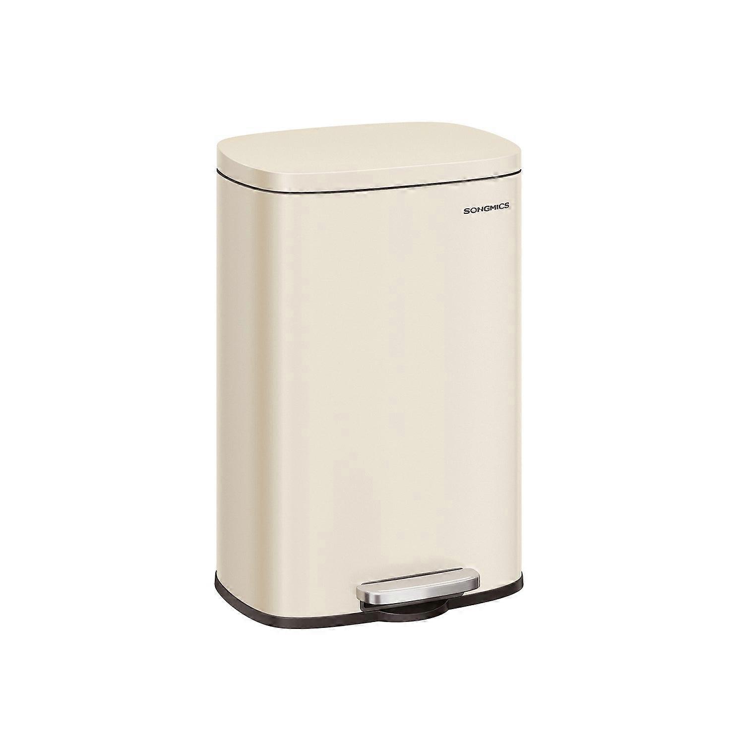 Homestorecity Prullenbak, afvalbak, 50 liter, stalen pedaalemmer, kunststof binnenemmer, met scharnierend deksel, soft-close, luchtdicht, voor in de keuken, zilver LTB050E01 - - Kleur: Zandbeige Materiaal: Stalen buitenbak, kunststof binnenemmer Afmetingen: 43,2 x 37,1 x 63,2 cm (L x B x H) Totale hoogte (met deksel open): 88,6 cm Afmetingen binnenemmer: 40,6 x 25,7 x 58,3 cm (L x B x H) Inhoud: 50 liter Gewicht: 5,8 kg