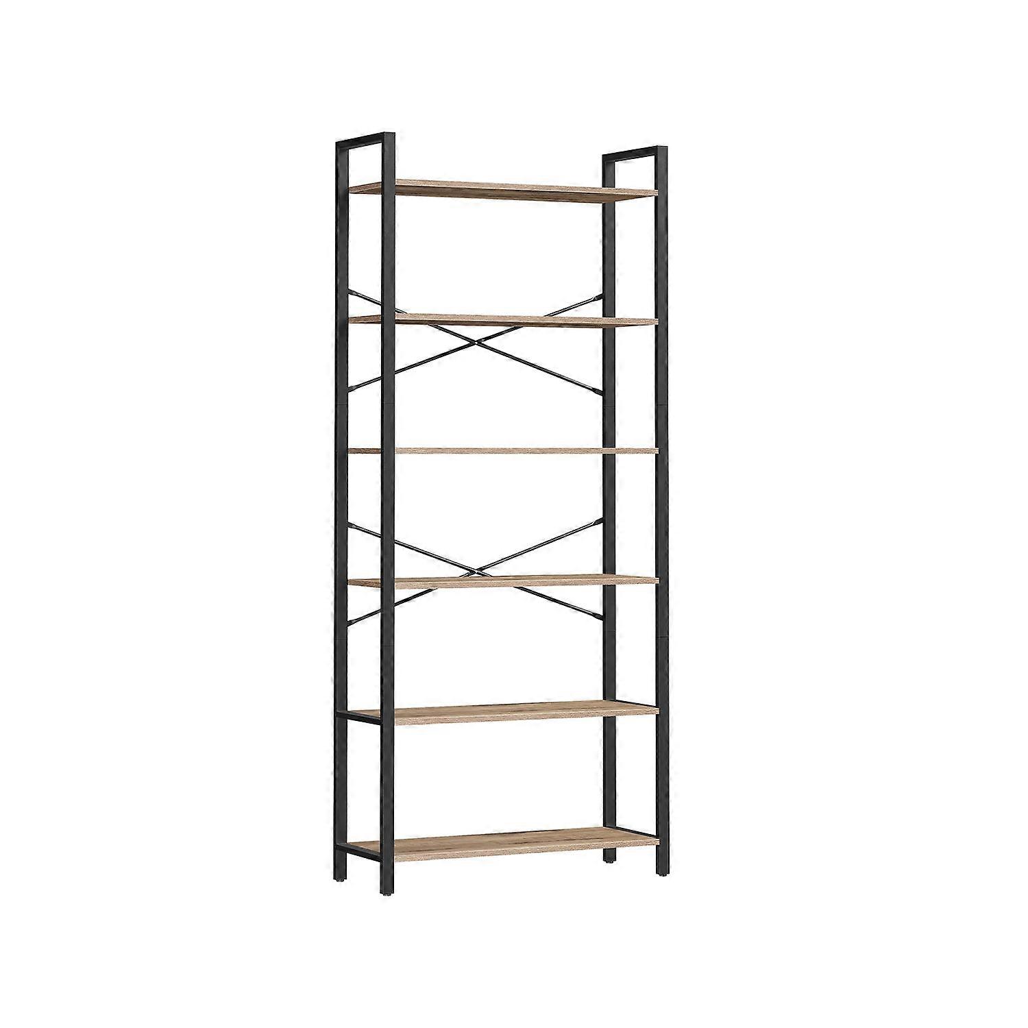 Boekenkast Met 6 Niveaus In Industrieel Design Kameelbruin En Inktzwart 80 X 30 X 186 Cm