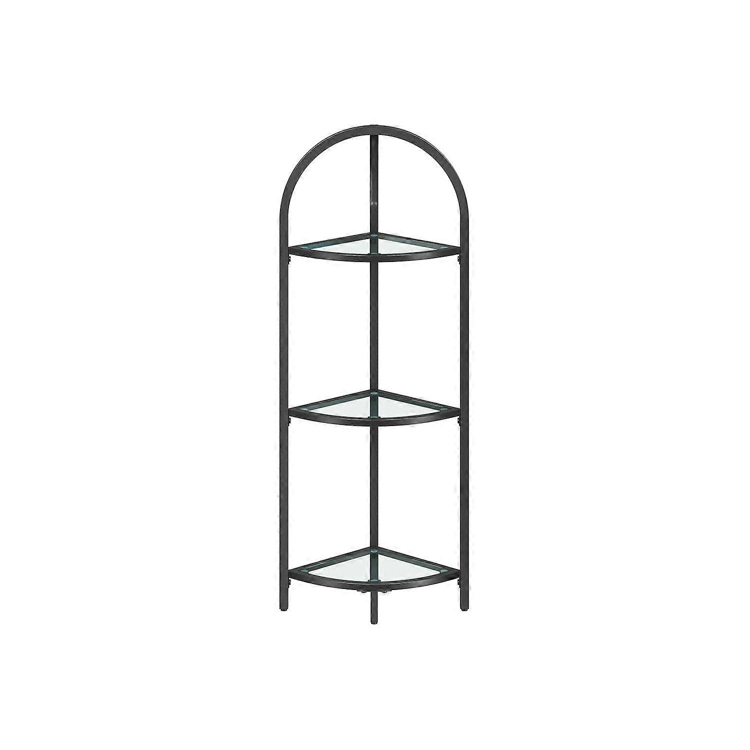Homestorecity Hoekplank 3-laags, Boekenkast, Plantenplank, Vrijstaande plank, Badkamerplank, Gehard glazen planken, Stalen frame, Modern, voor Woonkamer, Keuken, Klassiek zwart - - Kleur: Klassiek zwart Materiaal: Staal, Gehard glas Afmetingen: 28 x 28 x 95,2 cm (D x B x H) Afstand tussen de planken: 30 cm Gewicht: 3,4 kg Maximale statische belasting per plank: 5 kg