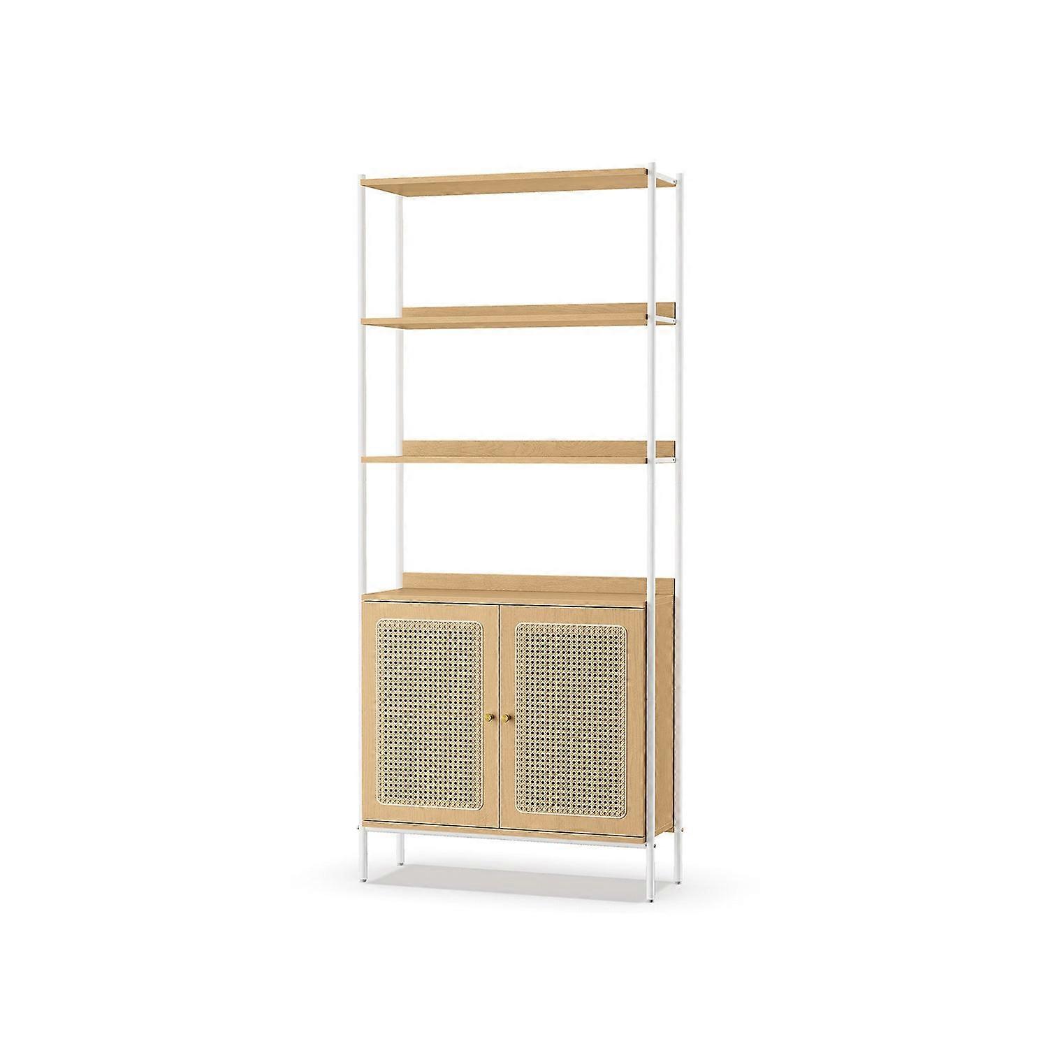 Boekenkast Met Deuren In Rotanlook, Eikenbeige En Parelwit 7 Cm