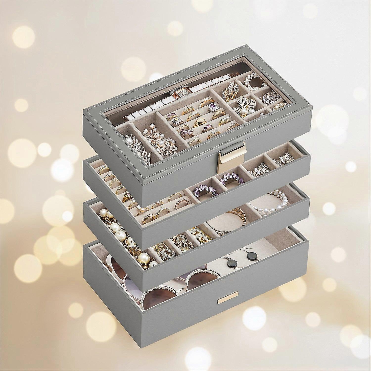 Sieradendoos 4 Niveaus Met Glazen Deksel Duifgrijs 3 Cm - Jbcb35164g01