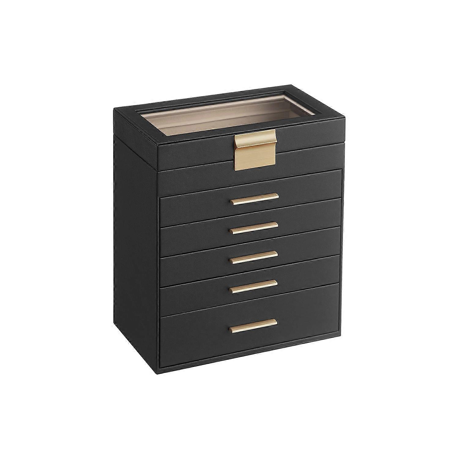 Sieradendoos 6 Niveaus Met Glazen Deksel Grafietzwart-goud 1 X 29 Cm