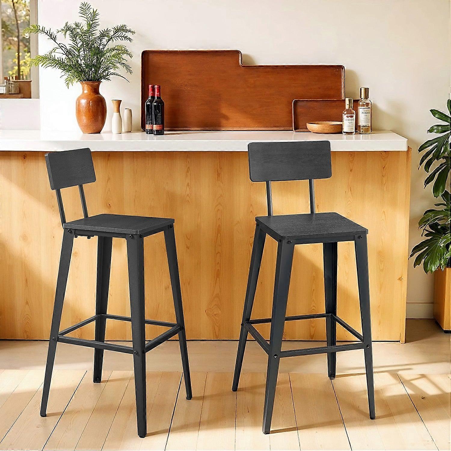 Homestorecity Barkrukken, Set van 2, Barstoelen, Keukenstoelen, met Rugleuning, Stalen Frame, Eenvoudige Montage, Industrieel Design, Vintage Bruin en Zwart LBC078B01 - - Kleur: Vintage Bruin en Inktzwart Materiaal: Spaanplaat, Staal Afmetingen per kruk: 45,4 x 45,4 x 102,2 cm (D x B x H) Zitvlakmaat: 34 x 34 cm (D x B) Zithoogte (vanaf de vloer): 74 cm Voetensteunhoogte (vanaf de vloer): 30,5 cm Rughoogte (vanaf de zitting): 28,2 cm Rugmaat: 34 x 15 cm (B x H) Rughoek: 103° Gewicht per kruk: 14,4 kg Max. statische belasting per kruk: 110 kg