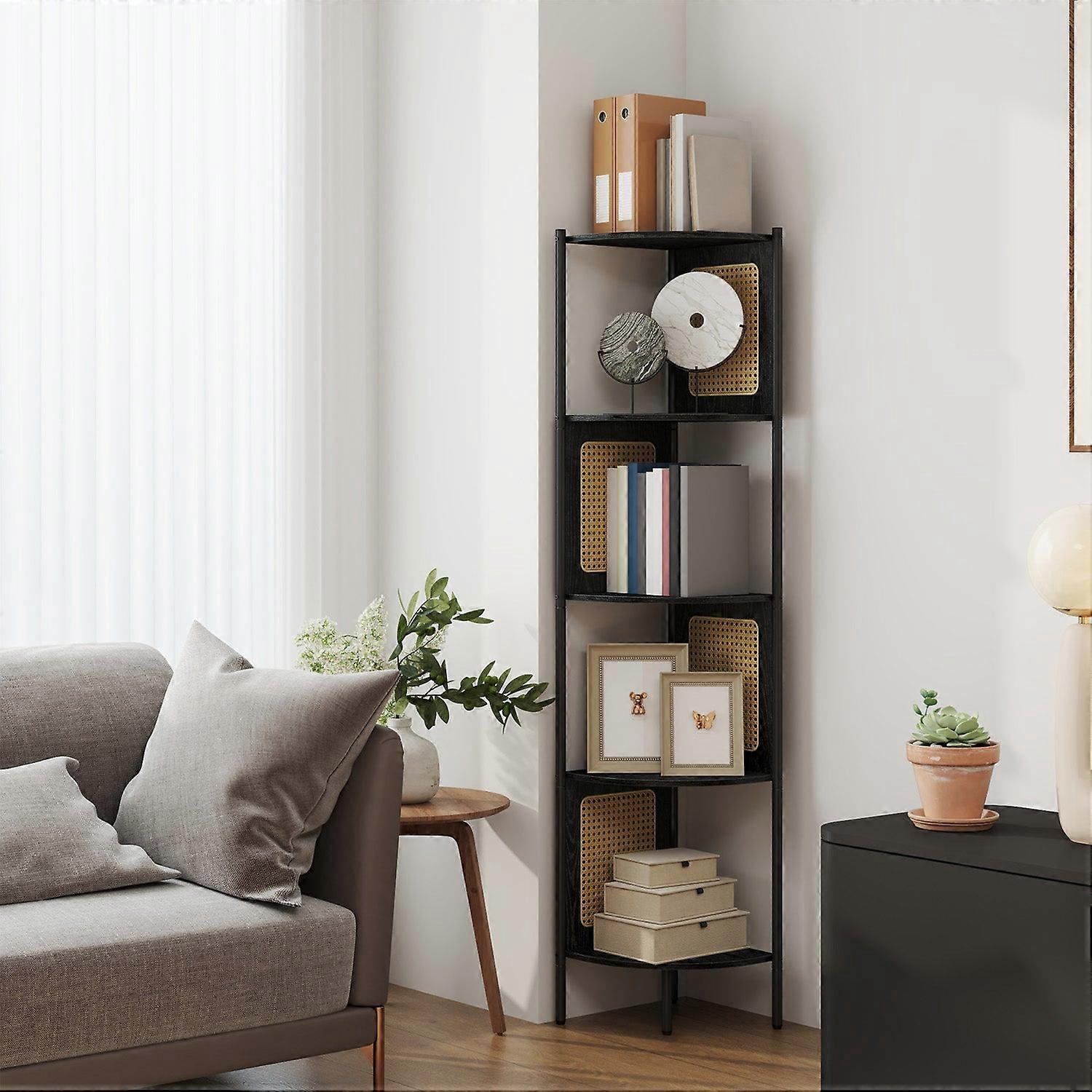 Hoekplank Met 5 Niveaus, Boekenkast, Polyrotan Zijpanelen 4 Cm - Llsb35588b56