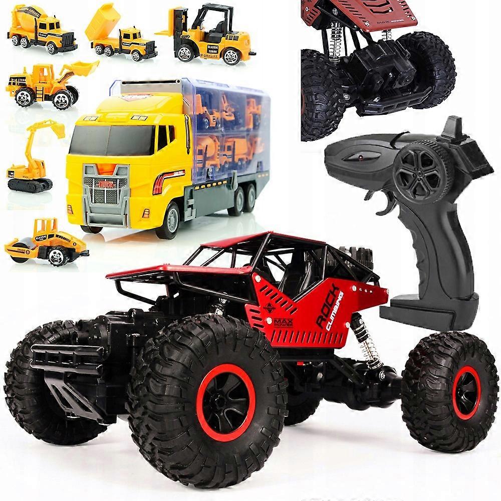 Rosfix Zestaw Samochód Zdalnie Sterowany Red Monster + Laweta Z 6 Autkami | Skala 1:16