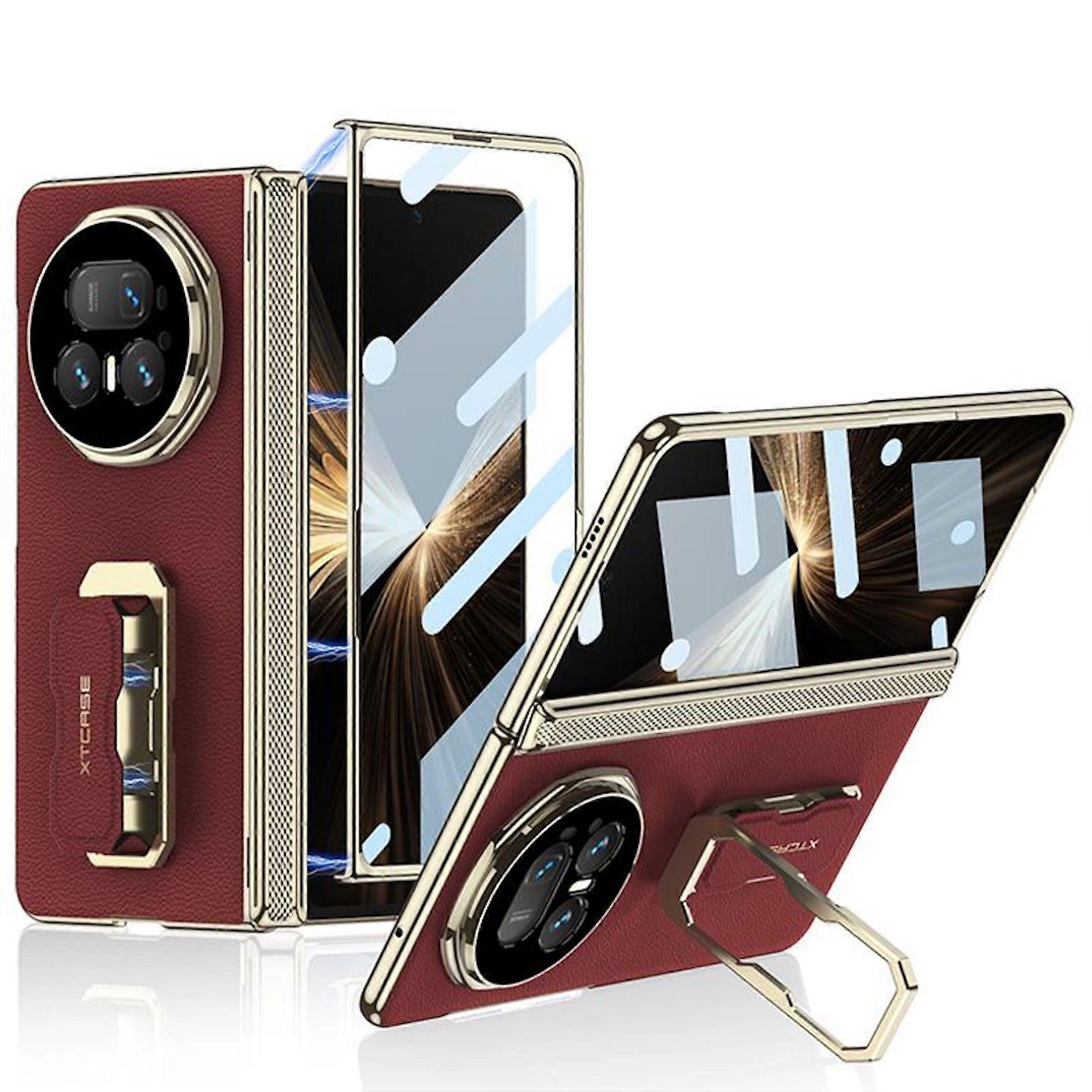 Für Honor Magic V5 Kunstleder Scharnier Hülle mit Handschlaufe Rot