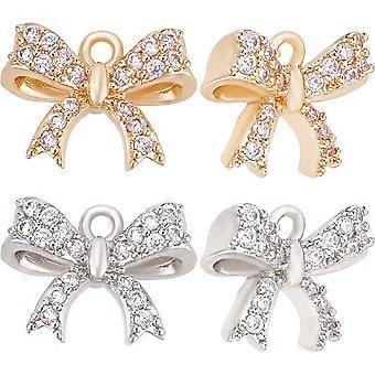 1 Box 12Pcs Gold Silver Bowknot Charms Tiny Cubic Zirconia Bow Dangle Pendants Charm with Loop for Jewellery Making 13x10mm