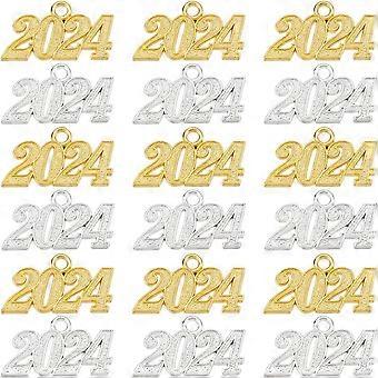 1 Box 40Pcs 2024 Charms Bulk Large Golden Silver New Year Number 2024 Letter Charm Graduation Cap Tassels 2024 Grad Caps Decoration Christmas Tree Han