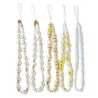 1 Set ABS Plastic Imitation Pearl & Wood & Polymer Clay Beaded Mobile Straps Nylon Cord Mobile Accessories Decoration Round & Teardrop & Flower Mixed