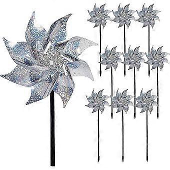 10 Pa Reflective Pinwheels With Stakes, Extra Sparkly Pin Wheel For Garden Decor, Bird Devices Deterrent To Scare Birds Away From Yard Patio Farm,7476