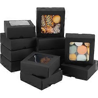 10 Pcs Square Gift Box with Window 5.11x5.11x1.96 Inch Gift Packaging Case Foldable Paper Boxes Cookie Boxes Bakery Boxes for Wedding Party Supplies T