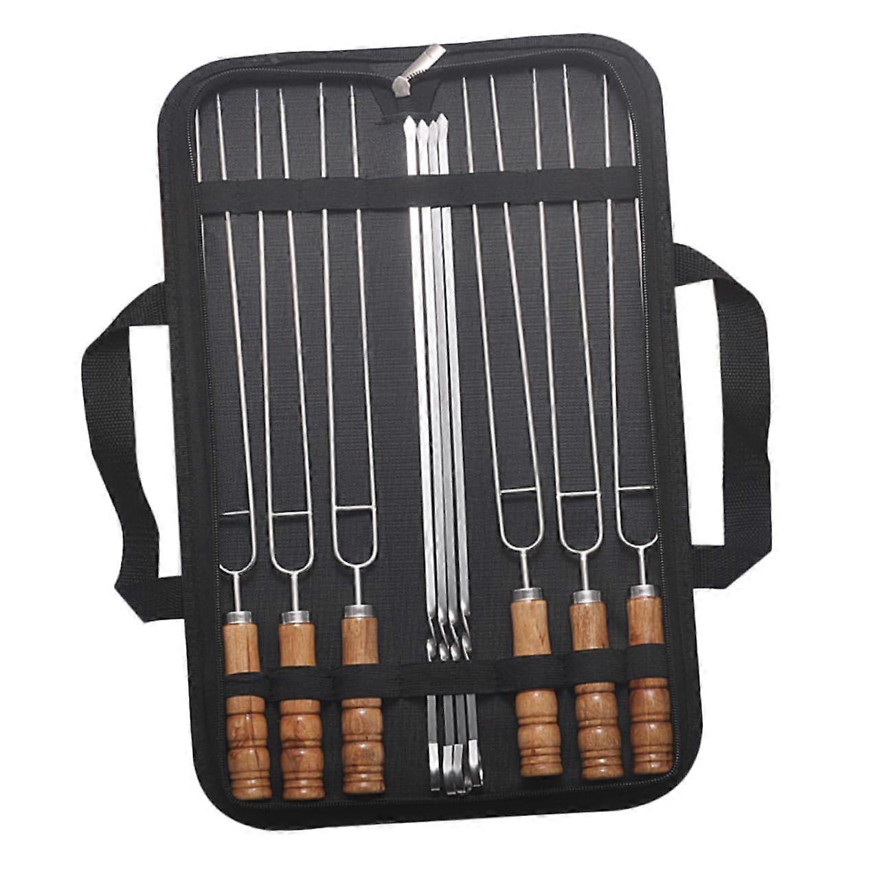 10 Pieces Stainless Steel Barbecue Skewers with Storage Bag, High Quality Kebab Skewers for Camping and Picnic