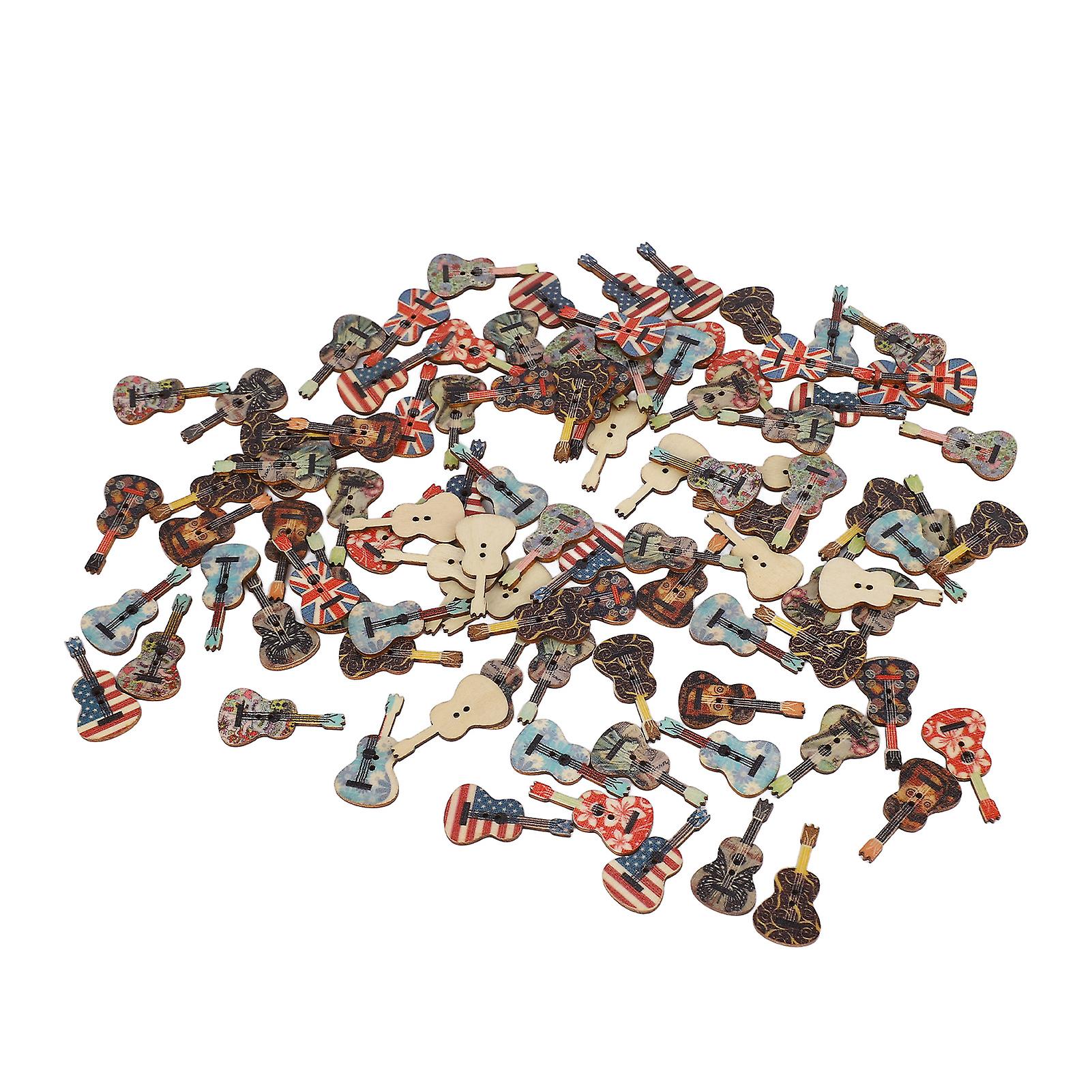 100pcs Wooden Guitar Buttons DIY Handcraft Cute Sewing Buttons with 2 Holes for Photo Frames Phone Cases