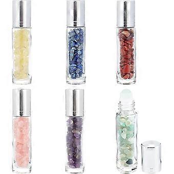 10ml Gemstone Roller Bottles 6pcs Natural Stone Glass Essential Oil Bottles 10ml Crystal Chips Roll On Bottles Perfume Stone Chips Sample Vial for Cos