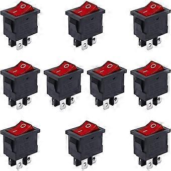 10Pcs AC 250V/6A 125V/10A On/Off DPST 4Pin 2Position Mini Boat Rocker Switches Rosso