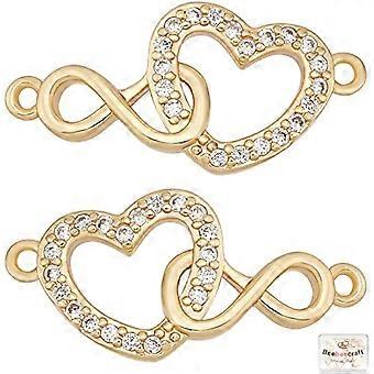 10Pcs Heart Links 18K Gold Plated Heart with Infinity Linking Charms Hollow Heart Connector Beads with Cubic Zirconia for Valentine s Day Jewelry Maki