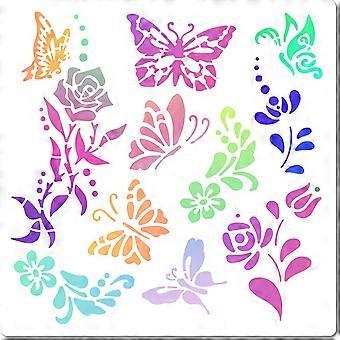 11.8 Inch Butterfly Stencil Reusable Painting Plastic Drawing Templates DIY Decorative Flowers Leaves Pattern Template Stencils Crafts for Furniture W