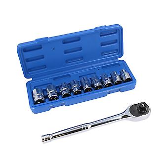 1/2" Drive Straight Ratchet + Female Torx Star E sockets E10 – E24 10pc Set