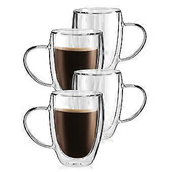 12 Oz Double Wall Glass Coffee Mugs Set of 4 with Handle, Insulated Clear Mugs for Cappuccino, Espresso, Latte, Tea