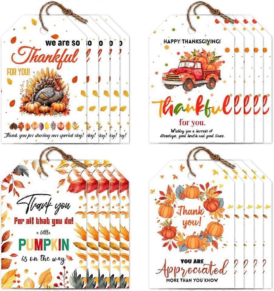 120Pcs 4 Styles Gift Tags Autumn Maple Leaves Tags with String Happy Thanksgiving Present Tags Pumpkin Thank You Tags Present Labels for Wedding Holid