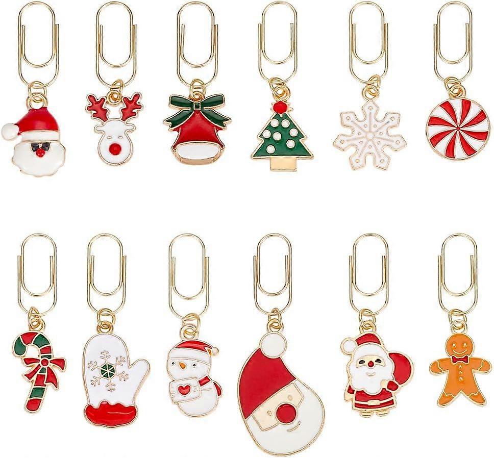 12Pcs Christmas Carbon Paperclips 1.5~2 Inch Alloy Pendant Paper Clip with Santa Claus Alloy Enamel Charm Enamel Paper Clips for Paper Document Note S