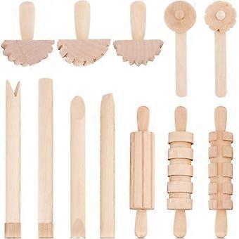 12pcs Clay and Dough Tools Play Accessories includes Rollers Hammer Party Pack Wood Pottery Tools Stamps for Clay Art DIY Crafts Art Craft Activity Su