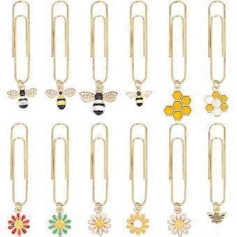 12Pcs Mixed Shape Bee Flower Planner Clips Colorful Paper Clips Set Golden Long Paper Clips Bookmark with Pendants Book Clips Accessories for Document
