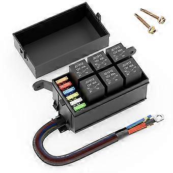 12V Automotive Relay Box 6 Way Relay Fuse Box, with 12 AWG PreWired, Fuse Relay Block Universal Relay Panel (Relay Fuse Box)