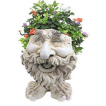 13 in. Antique White Ole Salty The Muggly Statue Face Planter Holds 5 in. Pot