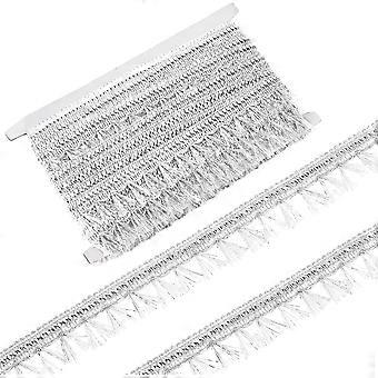15 Yards Silver Metallic Lace Trim with Short Tassel 1-1/8 inch Wide Polyester Metallic Ribbons Chainette Fringe Sewing Trim for Clothes Curtain Pillo