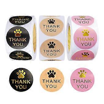 1500 Pcs Pet Paw Print Decals Thank You Stickers Roll, Round Kraft Dog Paw Print Labels for Small Business Packaging