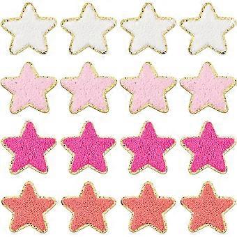 16pcs 4 Colors Star Patches Iron On Patches for Clothes Gold Edge Sew On Patches with Paillette Pink Stars Adhesive Embroidered Appliques for Jeans Co