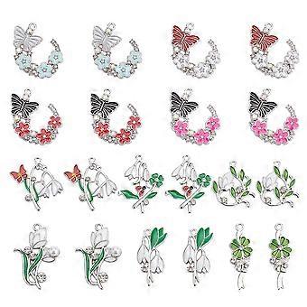 1Box 20Pcs 10 Style Alloy Rhinestone Pendants with Enamel Platinum Mixed Shapes Mixed Color 2pcs/style