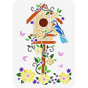 1Pc Bird House Reusable Painting Stencil Drawing Template for Floor Wall Tile Fabric Furniture 11.7x8.3inch