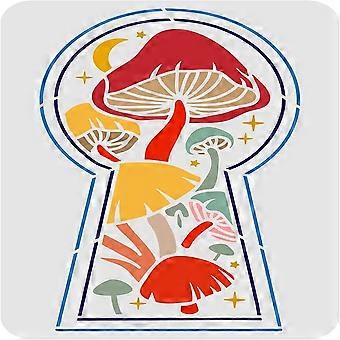 1pc Plastic Reusable Drawing Painting Stencils Templates for Painting on Fabric Tiles Floor Furniture Wood Rectangle Mushroom Pattern 297x210mm