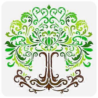 1pc Tree of Life Stencil 11.8x11.8 inch Damask Tree of Life Stencil Plastic Plant Tree Pattern Stencil Reusable Create DIY Tree Life Crafts and Decor