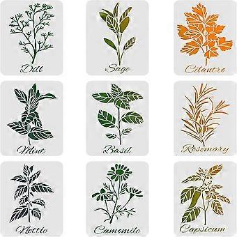 1Set 9 PCS Leaf Stencils Template 29.7x21cm Plastic Plant Drawing Painting Stencils Dill Sage Cilantio Mint Pattern Stencils Leaves Stencils for Paint