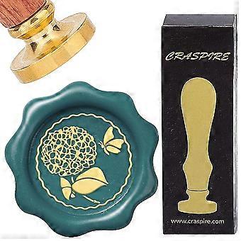 1Set Brass Wax Seal Stamps with Rosewood Handle for DIY Scrapbooking Hydrangea 25mm
