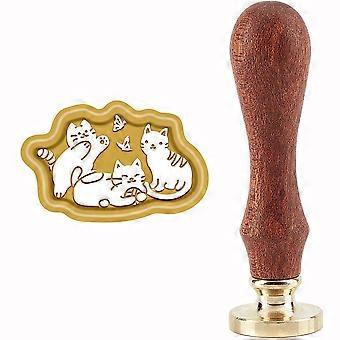 1Set Wax Seal Envelope Gift Seal with Yellow Sandalwood Cat Pattern 89~90mm