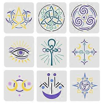 1Set Wiccan/Witch Symbols Stencils 15x15cm Stars Moon Stencil Plastic Devil's Eyes Stencil Moon Goddess Symbol Stencil Divination Theme Stencil