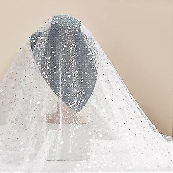 1sheet Glitter Tulle Fabric with Sequin and Beads White Ribbon Netting Fabric for Clothing Accessories