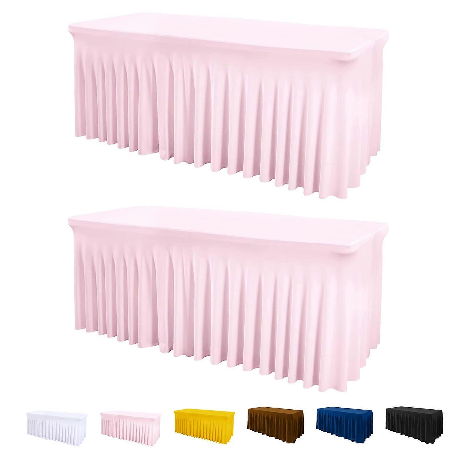 2 Pack Pink Table Cover and Table Skirt One-Piece for Weddings 6FT