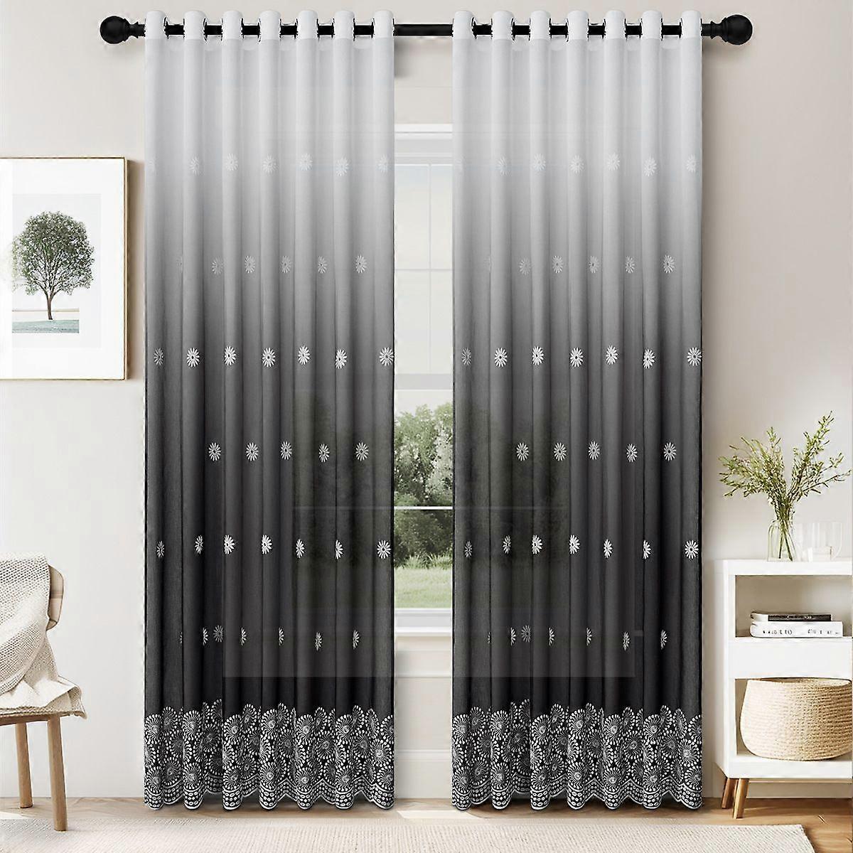 2pcs Blackout Curtains for Living Room - Room Darkening Window Curtains, Gradient Sunflower Embroidered Thermal Insulated Grommet Drapes