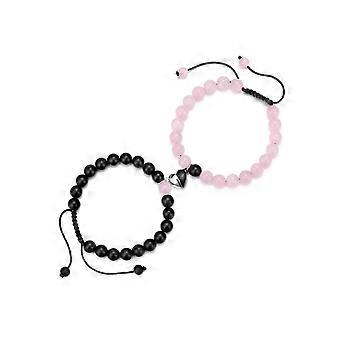 2 Bracelets 8mm Natural Stone Bead Healing Crystal Elastic Stretch Set For Lovers And Friends