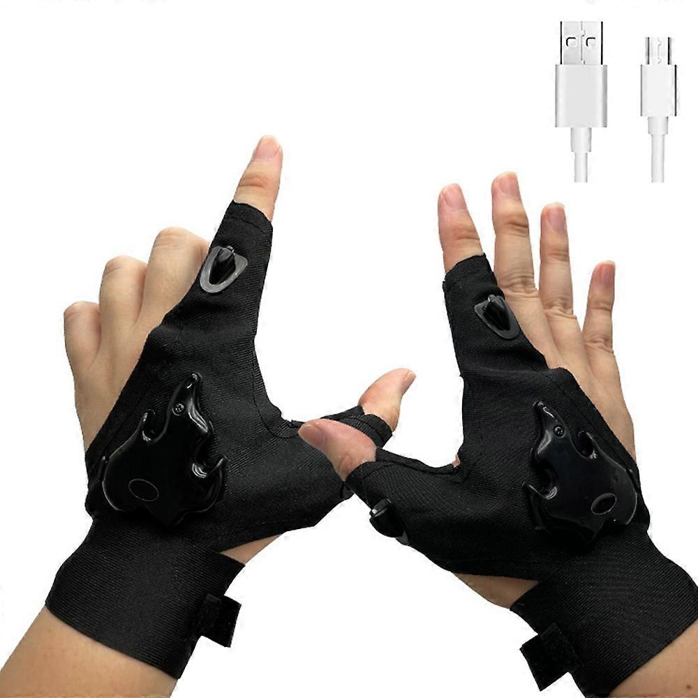 2 LED Flashlight Outdoor Fishing Gloves Fingerless Night Lighting Gloves