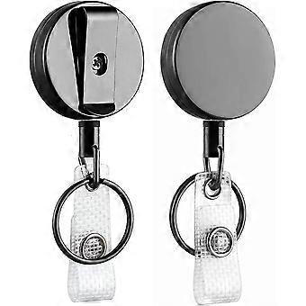 2 Pa Heavy Duty Retractable Badge Holder Reel, Metal Id Badge Holder With Belt Clip Key Ring For Name Card Keychain,7007