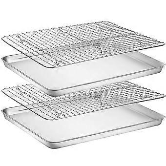 2 Pans + Racks Baking Sheet with Rack Set Stainless Steel Non Toxic Easy Clean for Baking Cooling 18 x 13 x 1 Inch