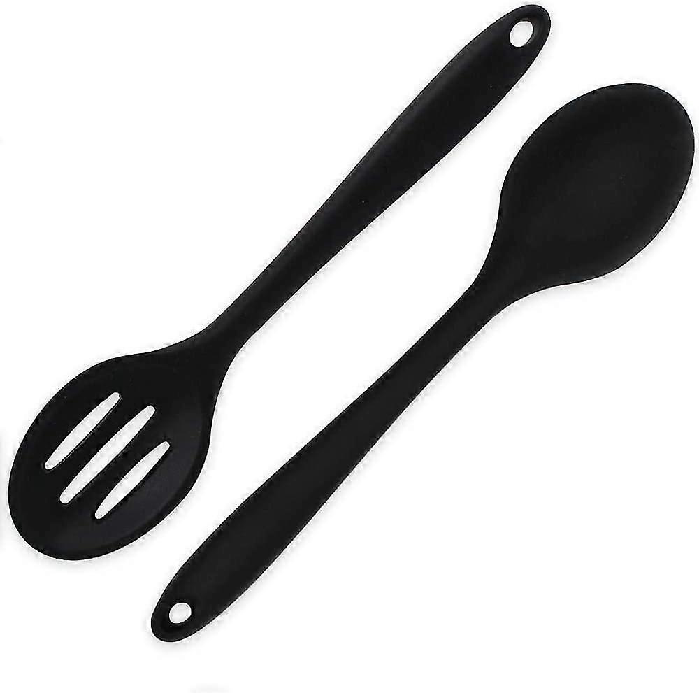 2 Pieces Silicone Nonsti Mixing Spoons, Bpa Free And Food Grade Serving Cooking Spoon, High Heat Resistant To 480f, Hygienic Design Slotted And Soli,3